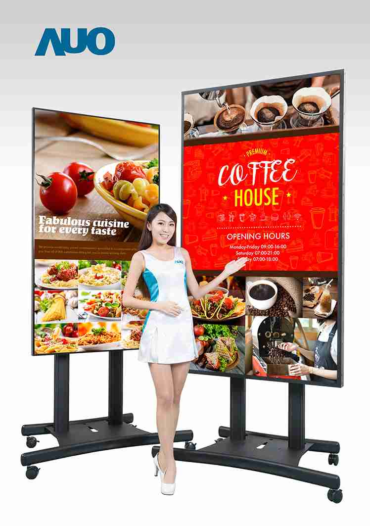本次领先业界(*) 推出 85寸 UHD 4K 户外型超大显示器,,,,具备 2500 nits 超高亮度和连续开机操作的稳定性能,,在阳光直射环境下影像仍然鲜明清晰,,,适合户外候车亭及高级精品店等广告播放使用。。55寸 Full HD 拼接墙显示器的极窄边框技术,,,,让相邻屏幕拼接后的边框宽度仅 1.8mm,,,,能因应各种空间灵活设计为不规则拼接墙,,,,搭配色彩及亮度调校技术呈现完美的画面均匀度,,,,打造独一无二的品牌形象广告。。。本次也将展出一系列的超宽型公共讯息显示器,,,,尺寸从 28.6寸至 42寸,,,,皆具备高解析、、、高亮度、、、高信赖性等特色,,,可配置于半户外环境,,,作为交通信息显示器提供旅客实时候车信息及广告讯息、、于零售商店展示超宽型广告,,,或打造成智能商店货架以互动感应设计呈现商品讯息,,增加消费者购物乐趣。。。。