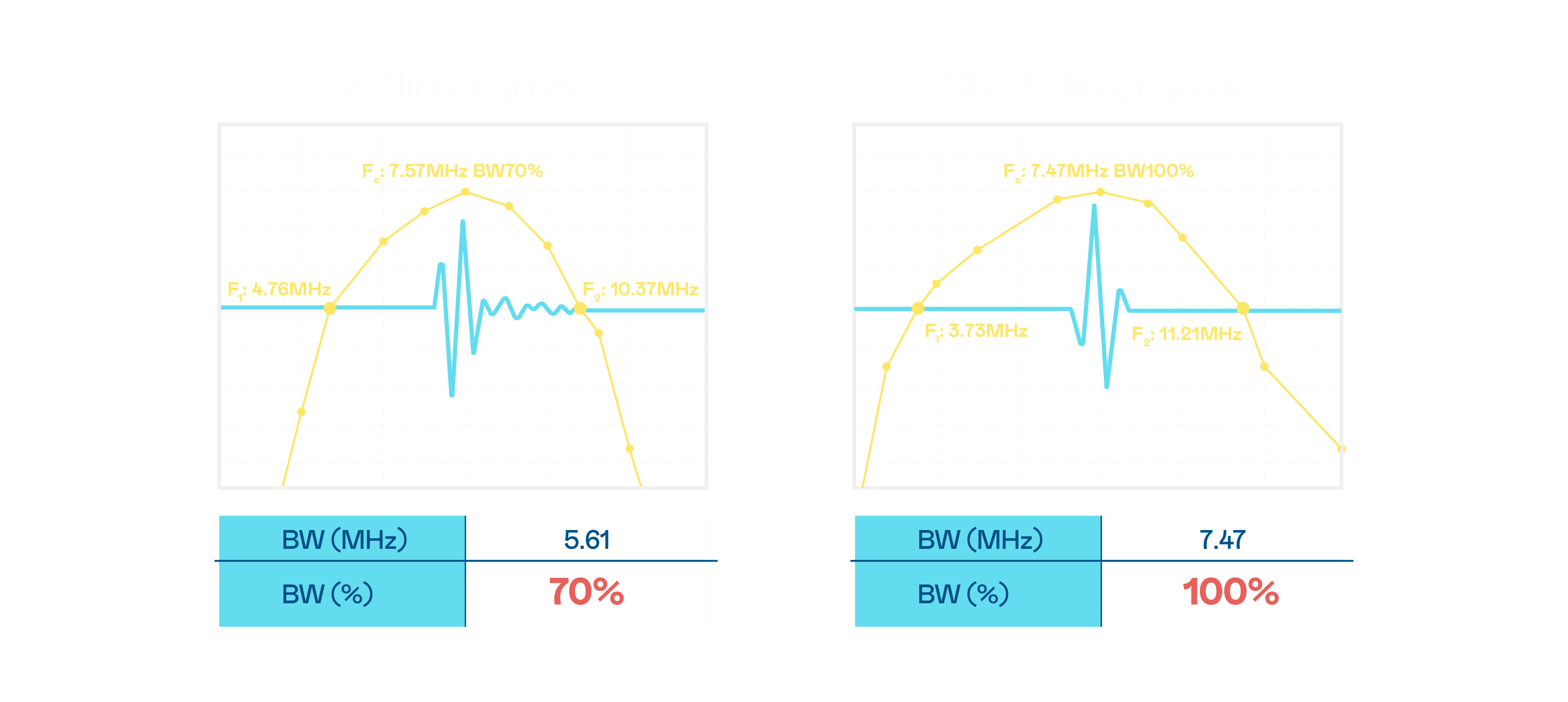 超音波影像的解析度高低,,,首先取决于探头能发出的讯号频宽。。彩运网 CMUT 可提供高清晰的超音波讯号,,提供高频宽、、、、高灵敏度、、、影像纹理细节更高的超音波影像,,,,协助医护人员缩短影像判读时间及利用精准的医疗影像进行诊断。。。